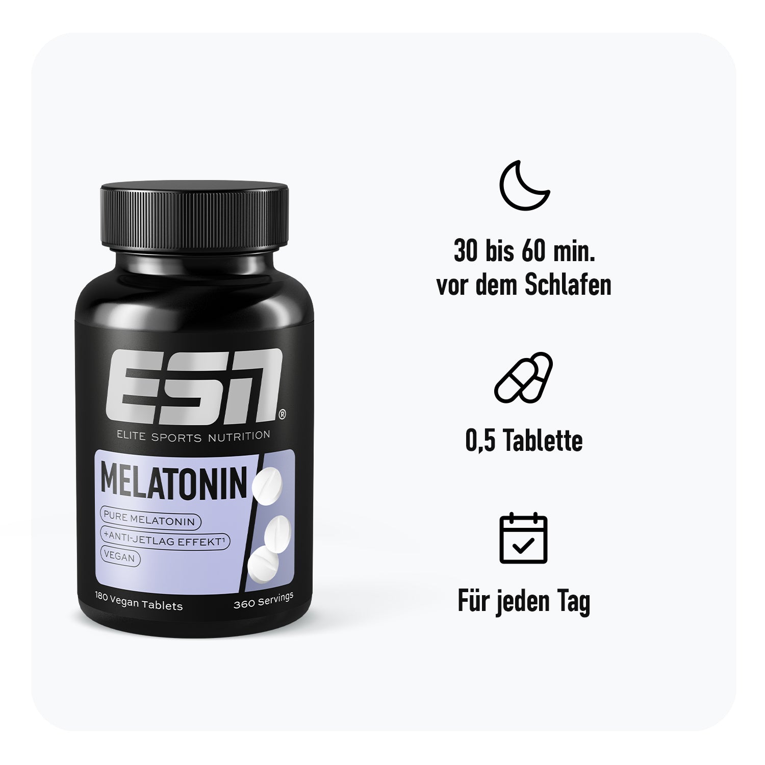 Gesunder Schlaf – ein Grundpfeiler deiner Gesundheit, denn schlechter Schlaf kann dafür sorgen, dass du weniger Energie für dein Training und deinen Alltag hast, sich deine Produktivität verringert und sich das Risiko für Krankheiten erhöht.4 Melatonin hilft dir mit seiner Funktion als natürliche Einschlafhilfe1 dabei, schneller einzuschlafen und mit folglich längerem Schlaf voller Energie in den Tag zu starten.1 Der Vorteil gegenüber Schlafmitteln ist, dass Melatonin nicht abhängig macht und keinen Gewöhnungseffekt aufweist. Es betäubt dich nicht, sondern supportet deinen Körper in seiner natürlichen Funktion. Sicherlich kennst du es selbst, wie du dich fühlst, wenn du ausreichend gut schläfst und dich nicht lange abends im Bett herumwälzt: Du bist deutlich fitter und leistungsfähiger. Durch guten Schlaf zeigen sich bspw. signifikante Verbesserungen der sportlichen Leistung in Bezug auf die Geschwindigkeit, die Genauigkeit und die Reaktionszeit. Auch das geistige Wohlbefinden ist ein besseres, wenn du ausreichend zur Ruhe gekommen bist.5 Also hol dir mehr Power für deine Performance durch den Schlaf-Support unserer Melatonin-Tabletten.