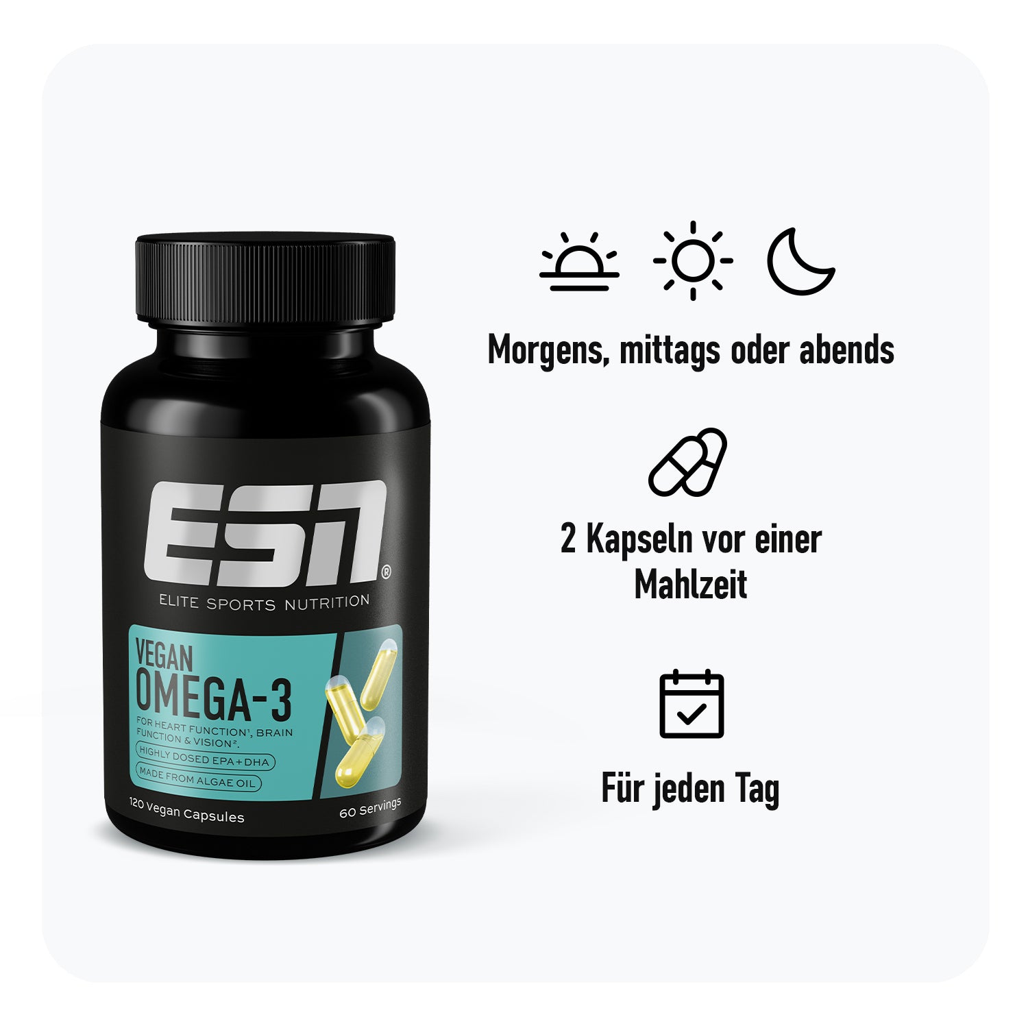 Unser veganes Omega-3 liefert dir hochwertiges EPA und DHA aus Meeresalgen – ganz ohne Fisch. So kannst du mit nur 2 Kapseln täglich gezielt dein Herz-Kreislauf-System, die normale Gehirnfunktion und die normale Sehkraft unterstützen.1,2,3 Nachhaltig und wissenschaftlich fundiert.