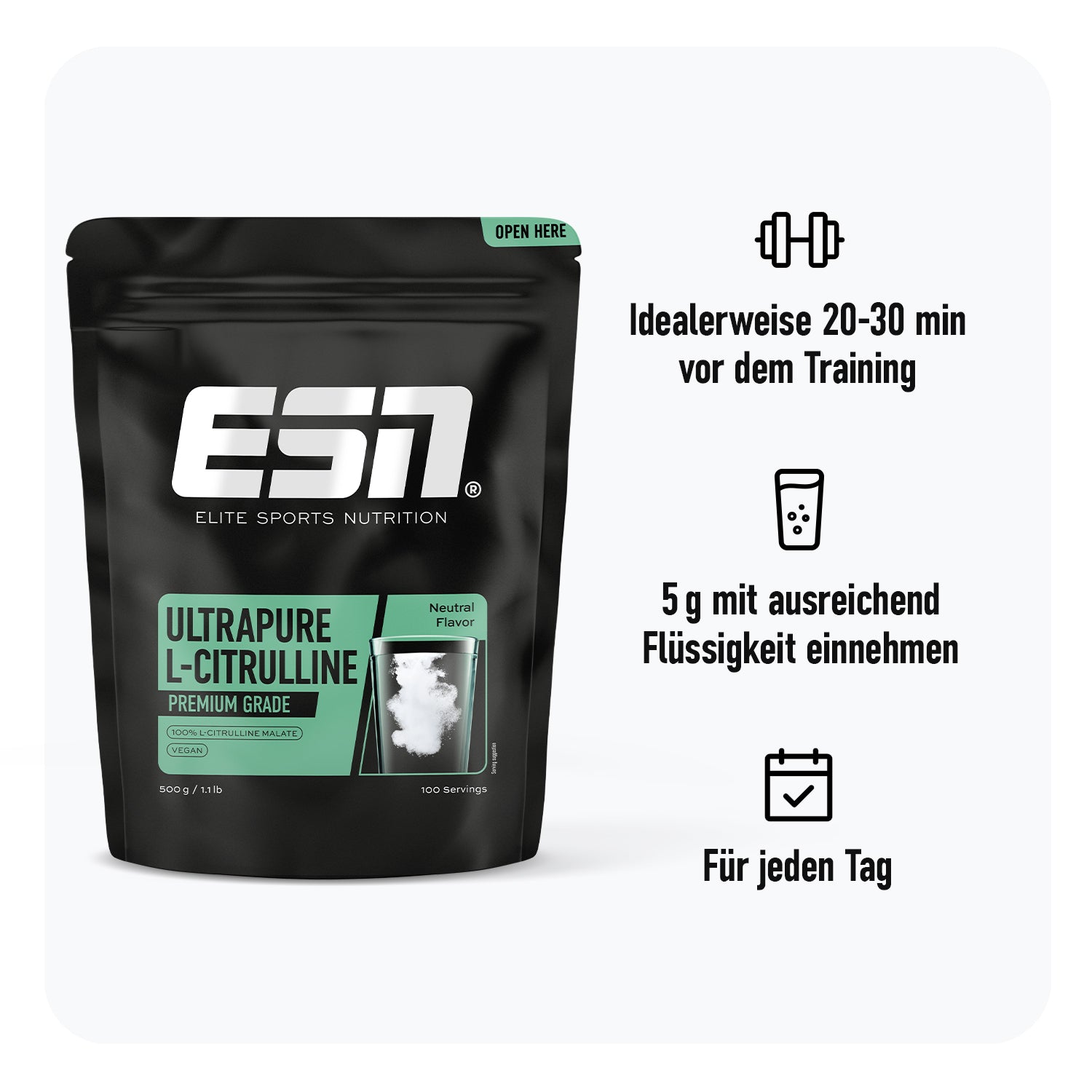 Ultra pump, endurance and recovery: Unser Ultrapure L-Citrulline Pulver liefert dir den optimalen Support für maximalen Pump, erhöhte Ausdauer und weniger Muskelkater. Ideal für alle, die ihre Trainingsleistung maximieren und die Regeneration optimieren möchten.