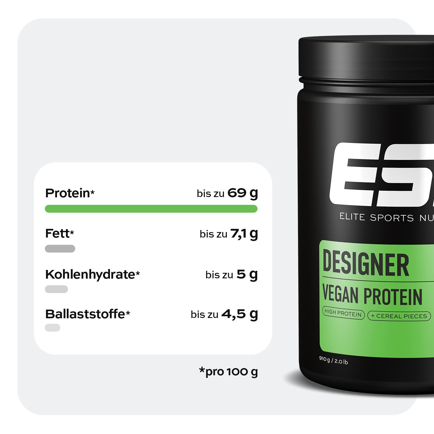 Plant protein power at it’s best – erlebe volle vegane Protein-Power mit unserem Vegan Designer Protein. Der Mix aus Erbsen-, Hanf- und Sonnenblumenprotein liefert dir neben vollem Geschmack und unglaublicher Cremigkeit, wertvolle Proteine und ein vollständiges Aminosäureprofil.