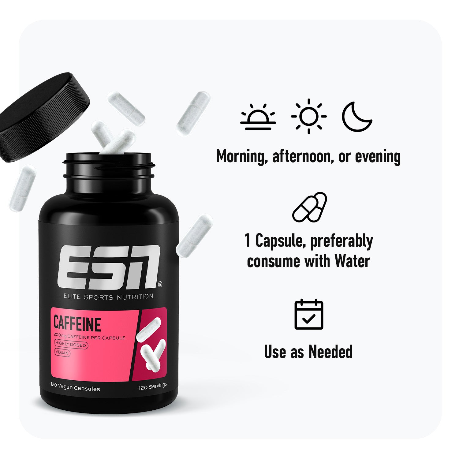 • With 200 mg of Caffeine per Capsule