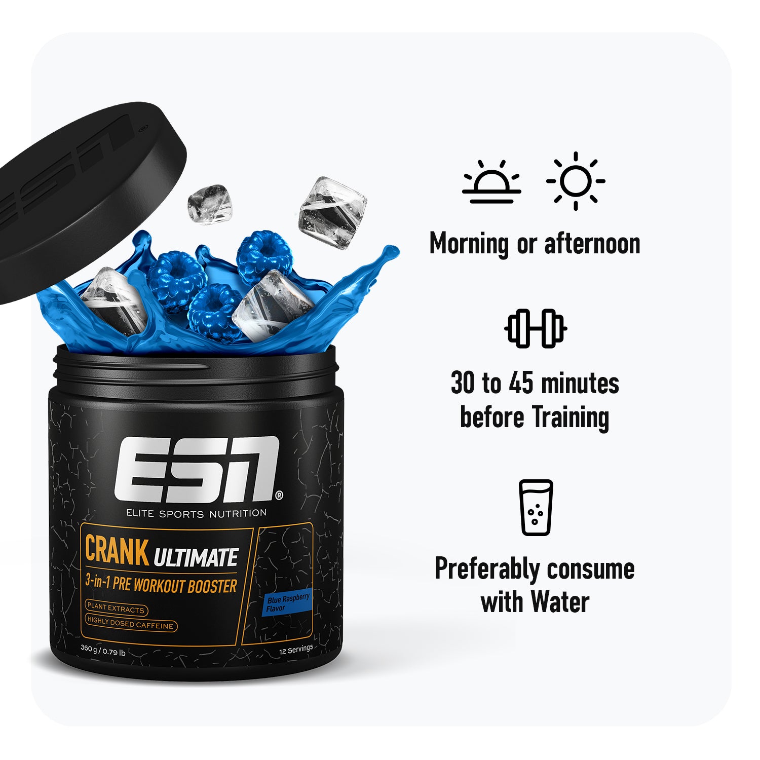 L-citrullina malato (2:1), destrina, L-arginina alfa-chetoglutarato (2:1), aroma, glicerolo in polvere (HydroPrime®), mix di elettroliti 6,5 % (citrato trisodico diidrato, potassio citrato, calcio citrato, magnesio citrato), taurina, L-tirosina, acidificante (acido citrico), L-glicina, glucuronolattone, adenosina 5'-trifosfato disodico (ATP) (come PEAK ATP®), estratto di buccia d'arancia amara, antiagglomerante (biossido di silicio), estratto di guaranà, estratto di rodiola rosea, estratto di tè verde, citicolina, estratto di semi d'uva, caffeina, estratto di schisandra, estratto di radice di ginseng, colorante (carotene), edulcoranti (sucralosio, glicosidi steviolici da stevia), estratto di ginkgo biloba, estratto di pepe neroCrank Ultimate Key-Facts