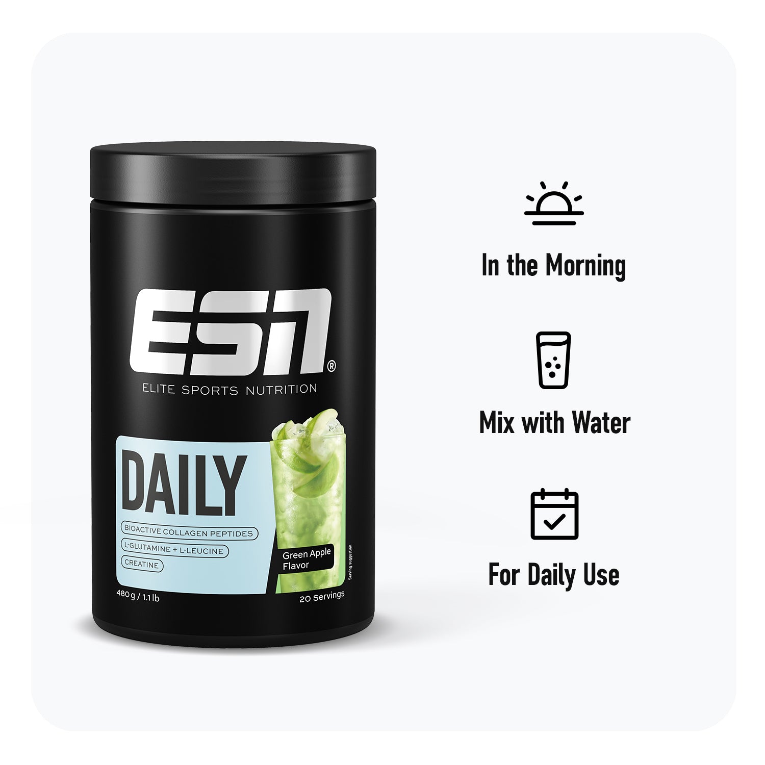 Idrolizzato di collagene (bovino), L-Glutammina, creatina monoidrato, acidificanti (acido citrico, acido malico), L-Leucina, destrina, aroma, antiagglomeranti (biossido di silicio), edulcoranti (sucralosio, acesulfame K), coloranti (carotene), coloranti alimentari (concentrato di spirulina).Daily – Caratteristiche principali