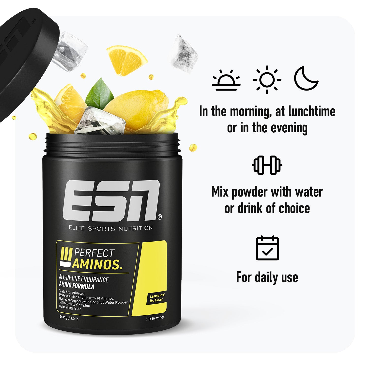 Perfezionate le vostre prestazioni - con i nostri Perfect Aminos. La sofisticata formula aminoacidica con un profilo aminoacidico perfetto, un complesso elettrolitico, vitamina B6 e altro ancora vi offre il supporto completo di cui avete bisogno per prestazioni, rigenerazione e idratazione ottimali.1 Perfetto per tutti gli atleti di resistenza!